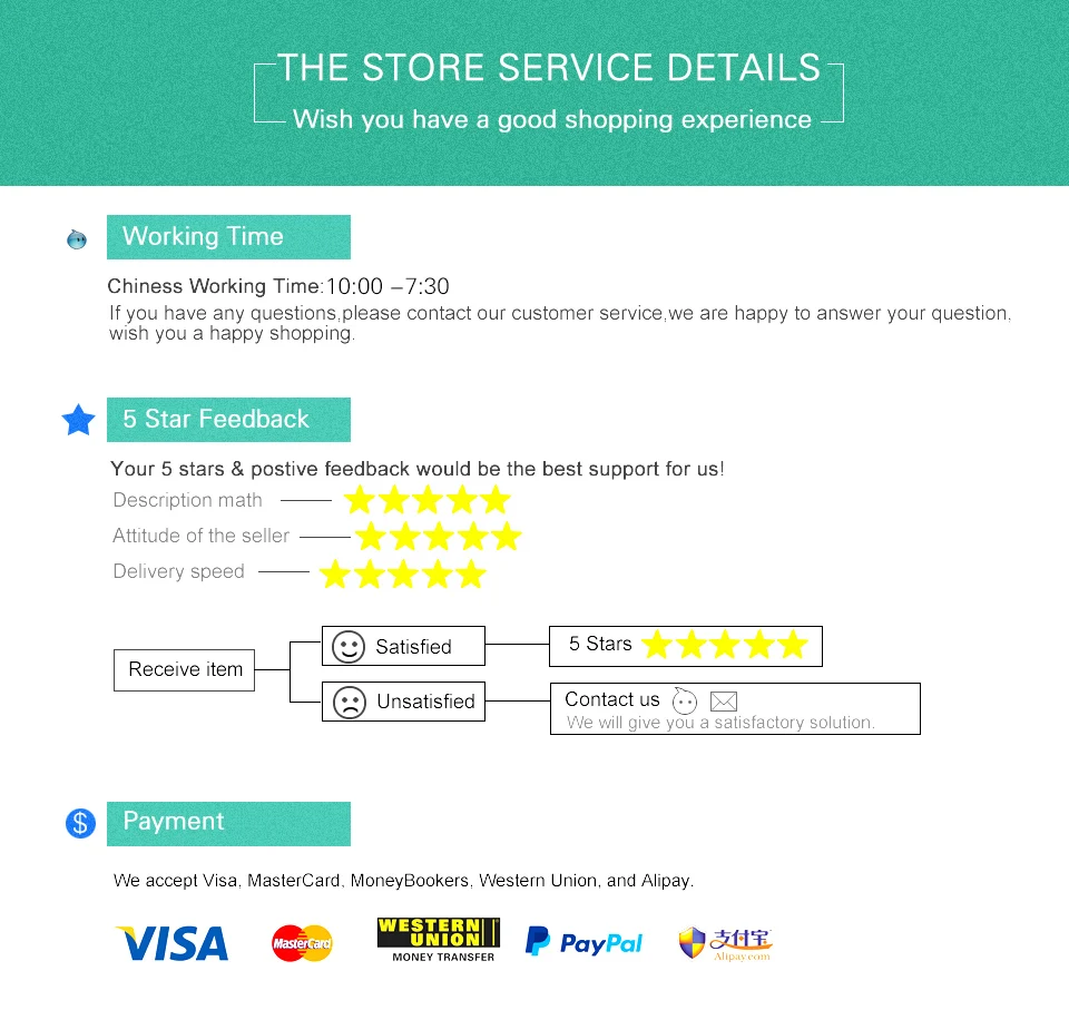 If the product you receive is not as described or low quality, the seller promises that you may return it before order completion (when you click "Confirm Order Received" or exceed confirmation timeframe) and receive a full refund. The return shipping fee will be paid by you. Or, you can choose to keep the product and agree the refund amount directly with the seller.N.B.: If the seller provides the "Longer Protection" service on this product, you may ask for refund up to 15 days after order completion.